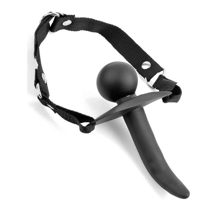 Кляп на регу­ли­ру­емых ремеш­ках. Имеет внешний аналь­ный отро­сток с изогну­той голов­кой, кото­рая заме­ча­тельно простиму­ли­рует про­стату у муж­чин, либо точку G у женщин!