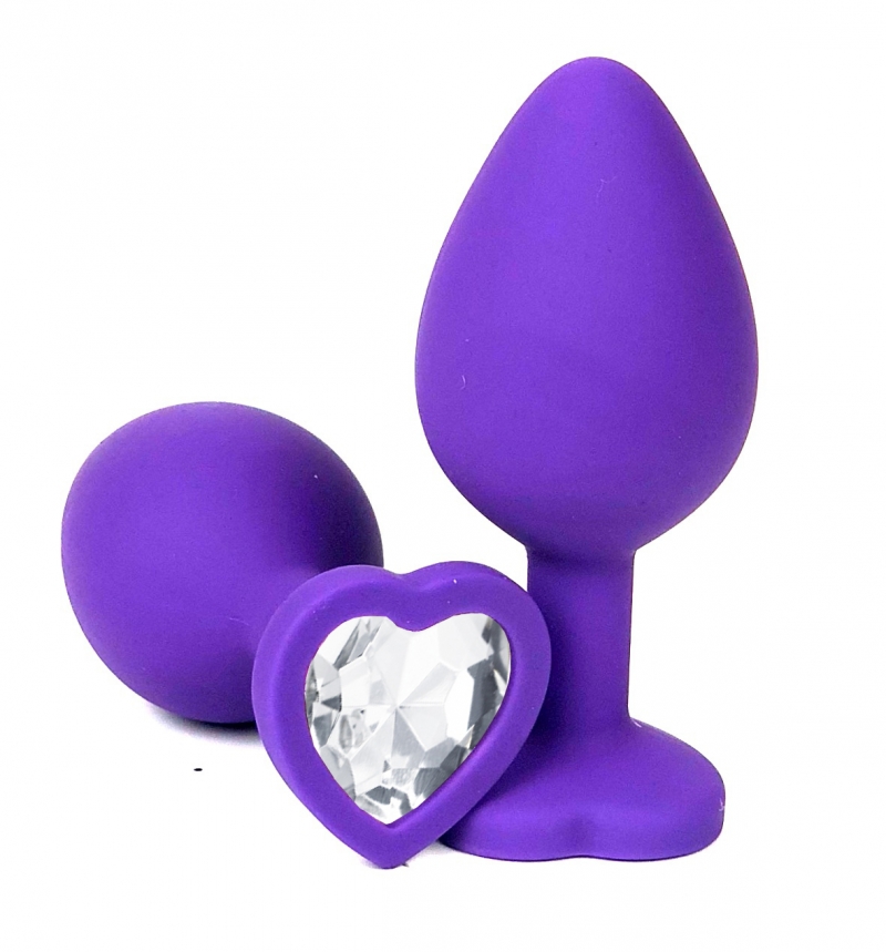 Пробка с белым кристаллом "Vandersex Heart" фиолетовая, S