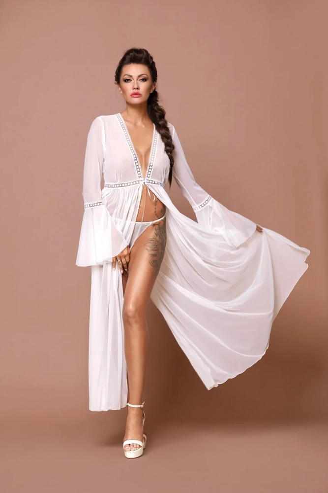Комментарий: Идельныый халатик, полпрозрачный, светлого цвета, длинный. Мне он очень нравится, охотно надеваю всегда!