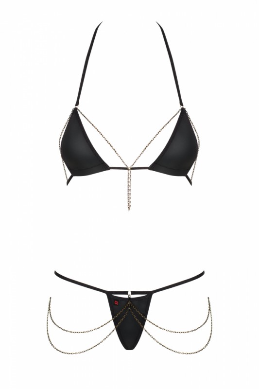 Комплект с золотыми цепями "Obsessive Redella" черный, S/M